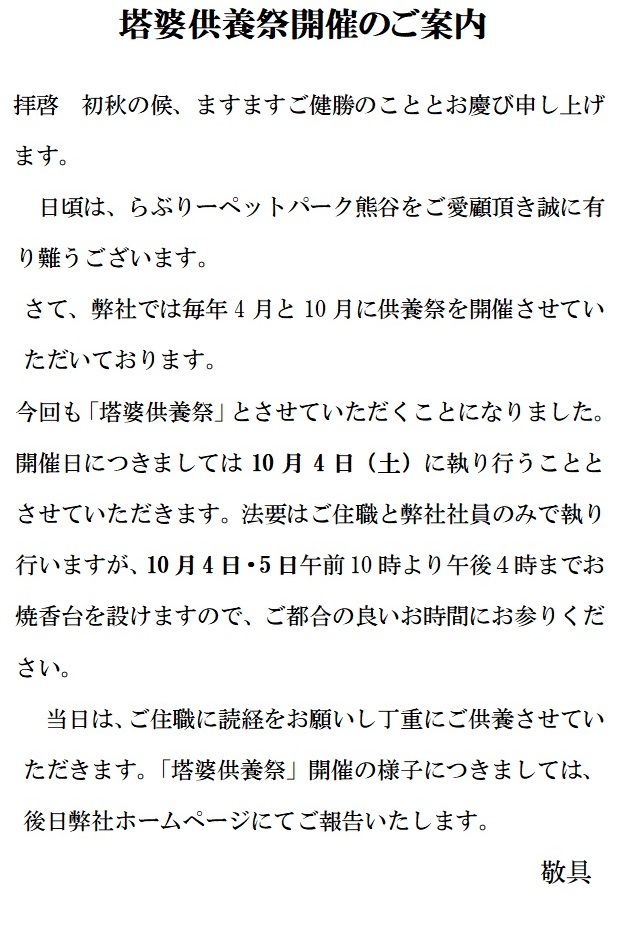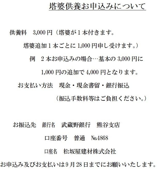 法要祭のページに 第51回塔婆供養祭の写真を載せています。